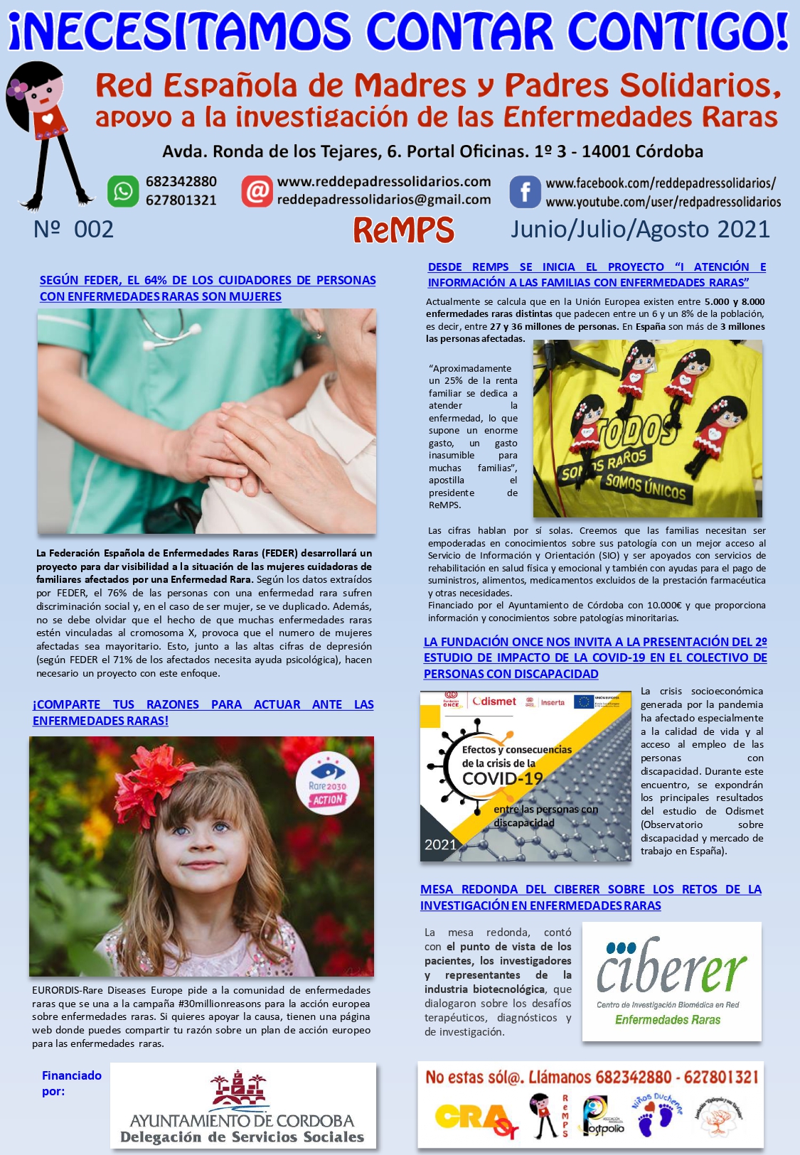 Para conocer el impacto de las informaciones que difunde la Red de Madres y Padres Solidarios. Apoyo a las enfermedades raras (en adelante ReMPS), y en el marco del proyecto Calidad de vida para afectados con patologías rara y crónicas, financiado por el Ayuntamiento de Córdoba, se ha realizado un dossier de prensa que recoge el impacto de dichas informaciones en los medios de comunicación de Córdoba desde febrero de 2021 a febrero de 2022.